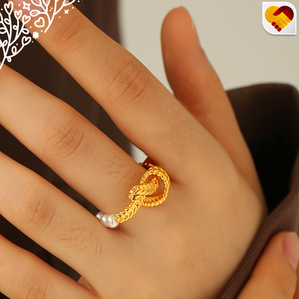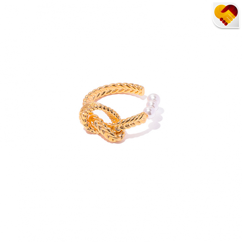 خاتم ذهبي عقدة وثلاثة لؤلؤ