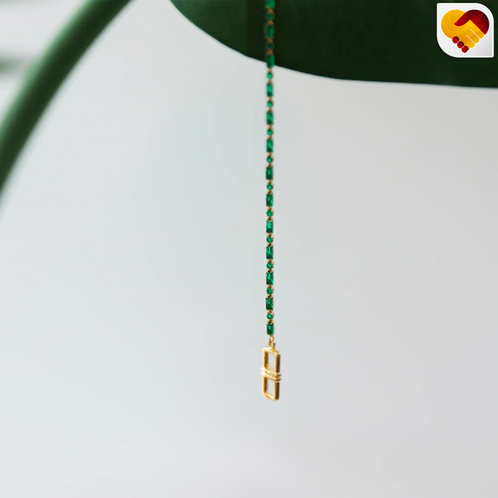 سلسلة فصوص خضراء ناعمة مطلي ذهب